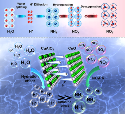 催化剂CuO/CuAlO2的NO3RR作用机理示意图