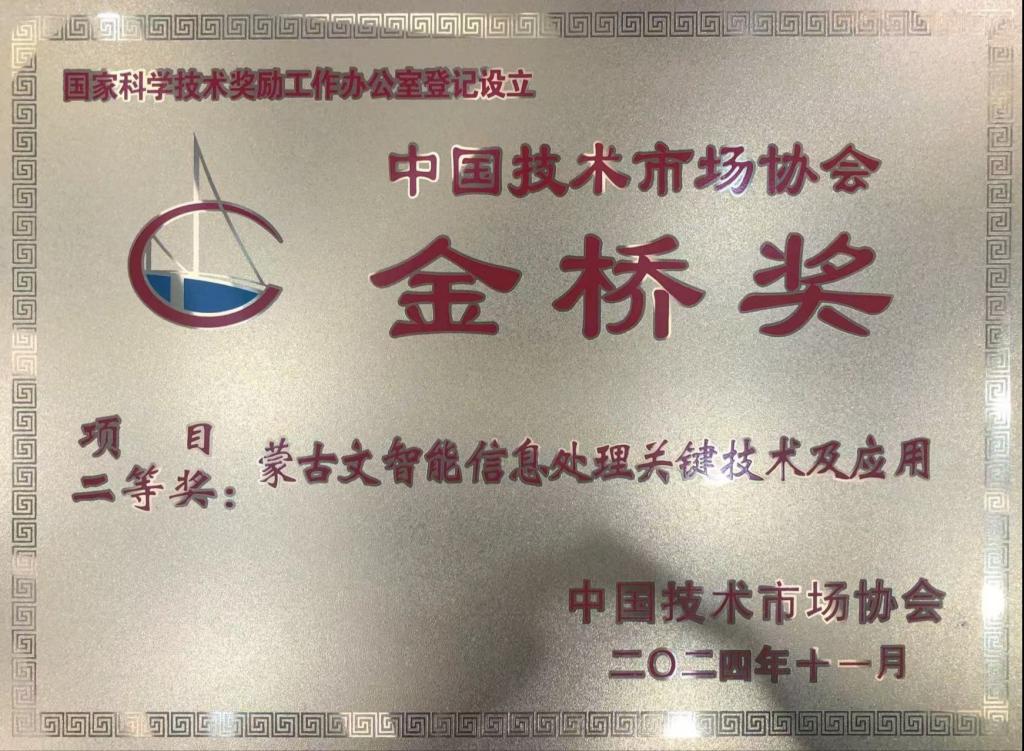 12月14日,第十二届中国技术市场协会金桥奖颁奖典礼在北京隆重举行。飞龙教授团队的“蒙古文智能信息处理关键技术及应用”荣获项目二等奖,这也是sunbet申愽官网首次获得该奖项。中国技术市场协会金桥奖是经国家科学技术奖励办公室审定、批准设立的全国技术市场最高奖项,每两年评选一次,以促进科技成果转化、推动我国技术市场繁荣和发展为宗旨。这一奖项的获得,标志着sunbet申愽在科技创新与成果转化方面取得了新的重要进展。
