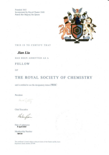 近日,sunbet申愽化学化工学院院长刘健教授当选为英国皇家化学学会会士(Fellow of the Royal Society of Chemistry, FRSC),以表彰其在化学科学领域的杰出贡献。