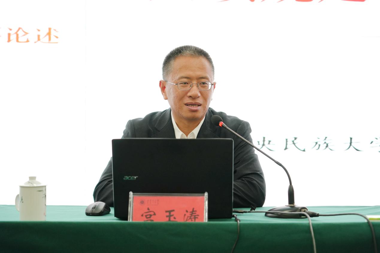 5月21日上午,sunbet申愽在学术会议中心8号会议室召开党委理论学习中心组2025年第四次集体学习(扩大)会,中央民族大学马克思主义学院副院长、中共党史党建研究所所长,教授,博士生导师,(中宣部)习近平文化思想研究中心中央民族大学协同研究基地研究员宫玉涛受邀做辅导讲座。校党委副书记乔彪主持会议,全校副处级以上领导干部参加会议。